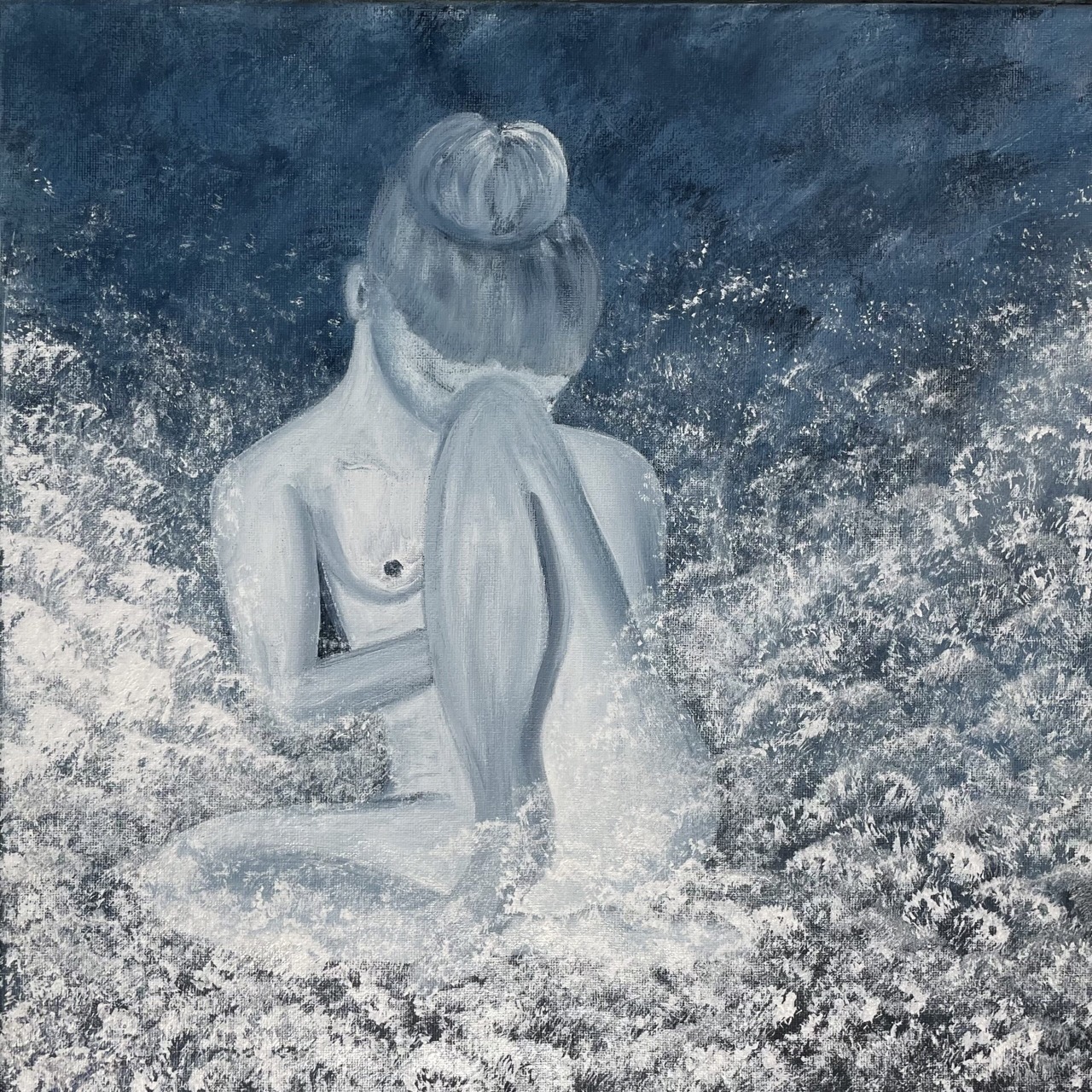 Ein figuratives Originalkunstwerk über Rückzug und Schutz. „KOKON – Manchmal braucht es einen Engel“ zeigt den Moment, in dem sich alles nach innen richtet.