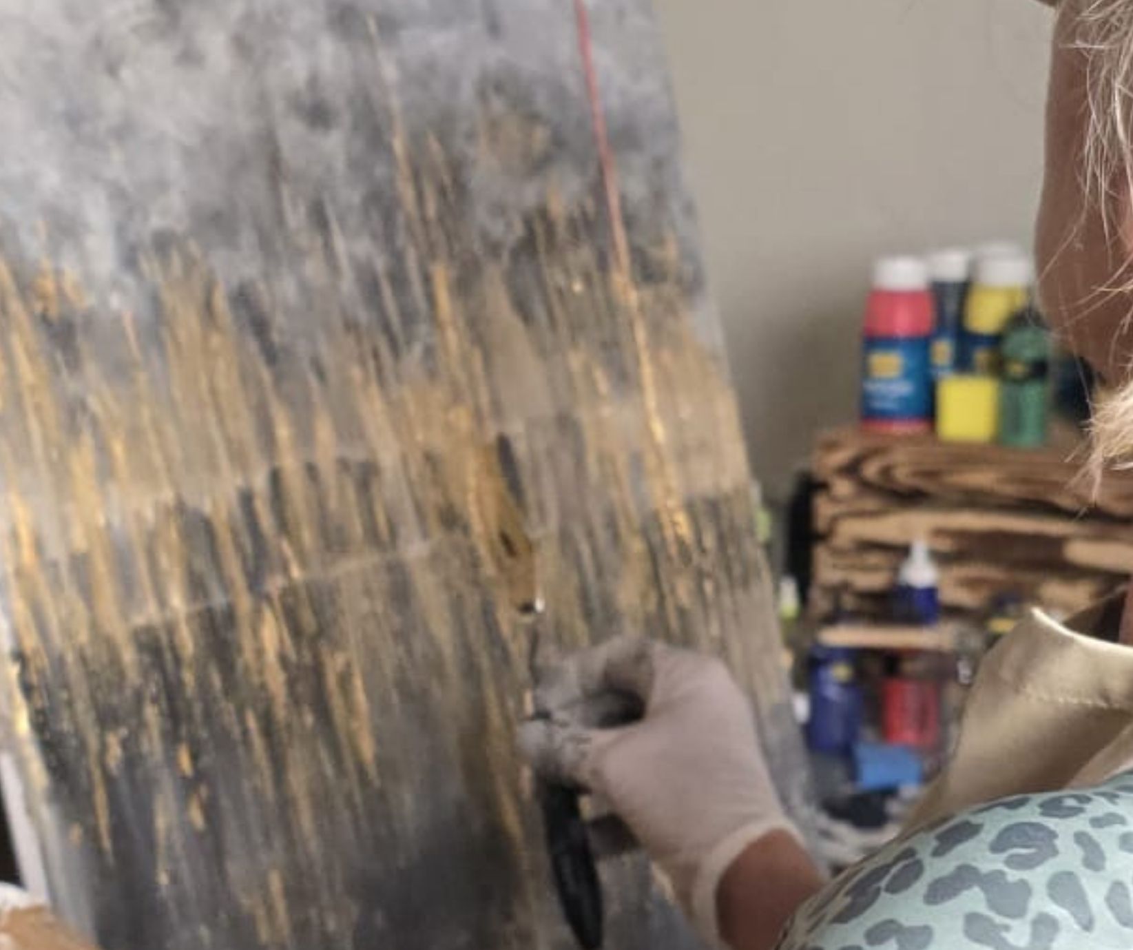 Im Atelier von LadyMARIANN-Arts arbeitest du mit Acrylfarben, Strukturmaterialien und unterschiedlichen Werkzeugen.
