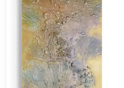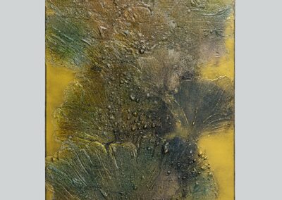 Technik/ Medium: Acryl, Strukturpasten, Spray, Spachtel- und Wischtechnik, partiell erhitztes Material