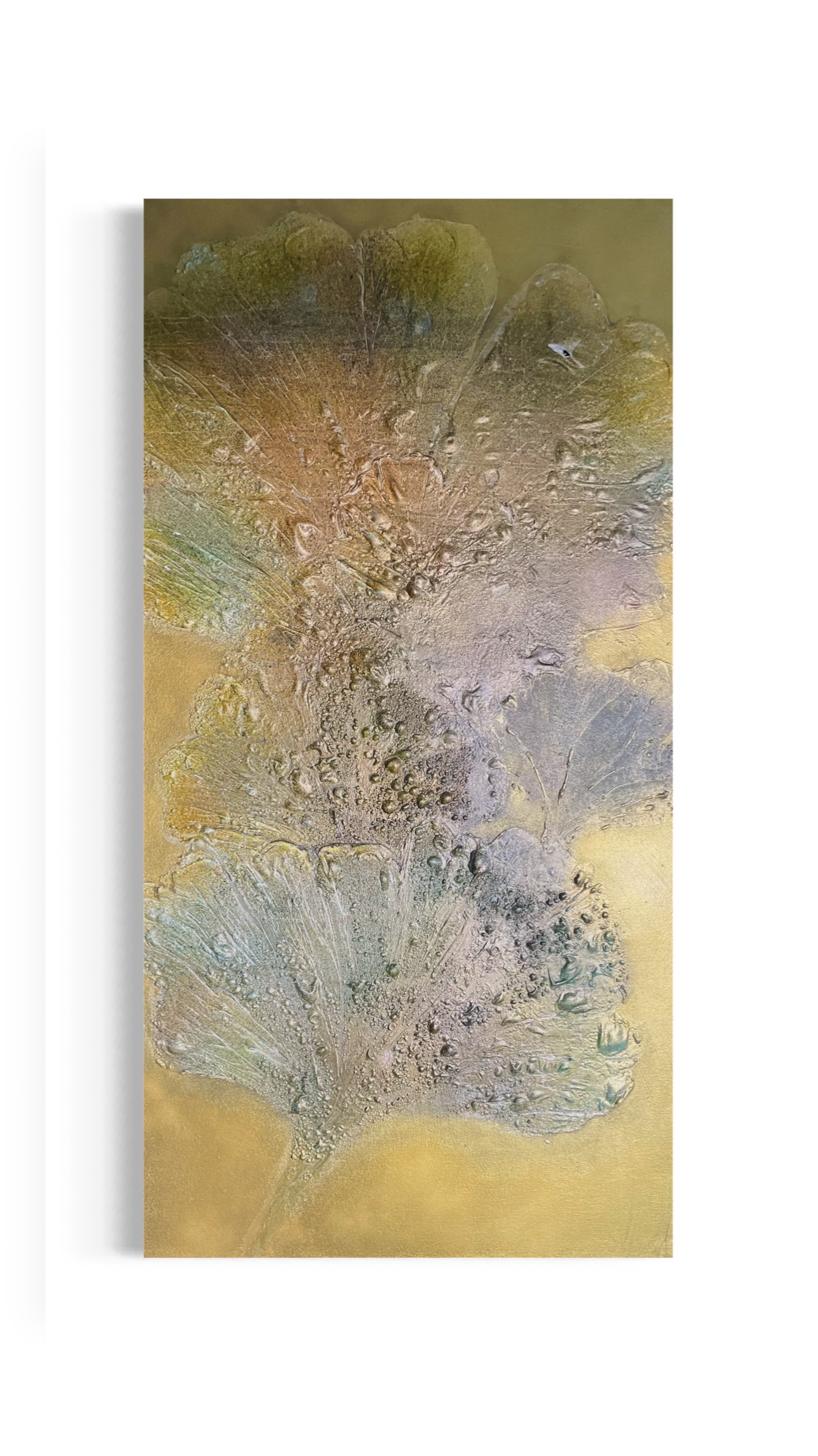 Was zunächst wie ein Gingko-Blatt erscheint, ist keine klassische Darstellung. Es ist ein Abdruck eines Prozesses. Eine Form, die sich unter Spannung entwickelt hat.